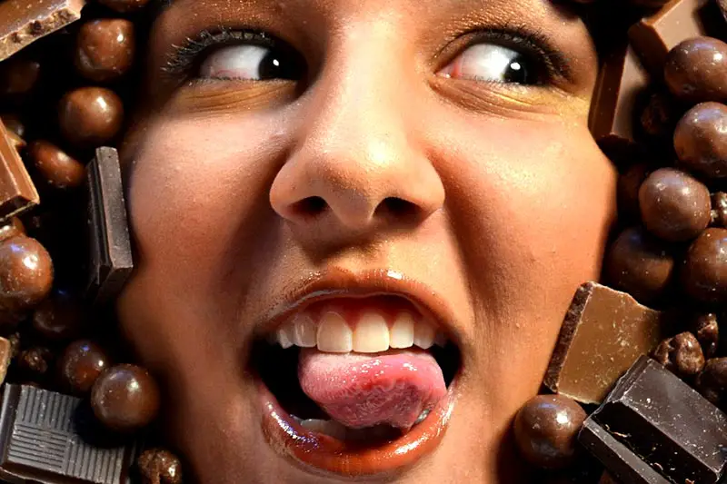 Aber der Effekt im Gehirn wird doch eher durch den Zucker ausgelöst, der in der Schokolade ist, oder?