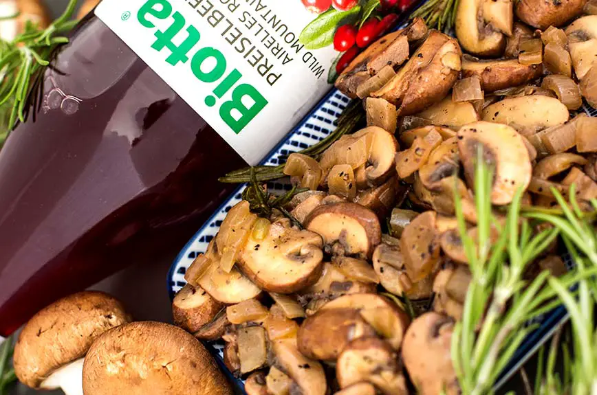 Mit ein wenig Preiselbeersaft werden eingelegte Champignons super fruchtig und ein absoluter Gaumenschmaus.