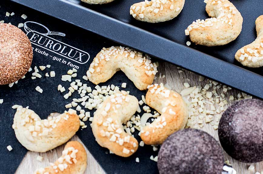 Vielleicht hat ihr ja bereits ähnliche Erfahrungen gemacht, Backbleche haben meist eine blöde Eigenschaft, sind sie einmal dreckig, dann lassen sie sich nur schwer wieder saubermachen. Wenn ihr euch über schlecht zu reinigende Backbleche ärgert, dann kann ich gerne die Backbleche von Eurolux empfehlen. Die sind super beschichtet und damit mit einem Wisch wieder sauber. Dahinter steckt noch echte Wertarbeit!