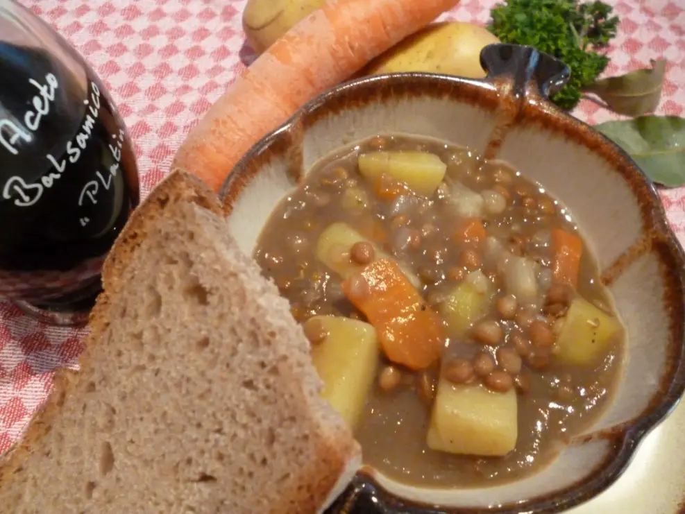 - Sobald das Gemüse einigermaßen gar ist kommen die Linsen noch dazu. Anschließend schmecken wir alles noch mit Salz, Pfeffer und einem Schuss Balsamico ab und fertig ist unser veganer Linseneintopf.