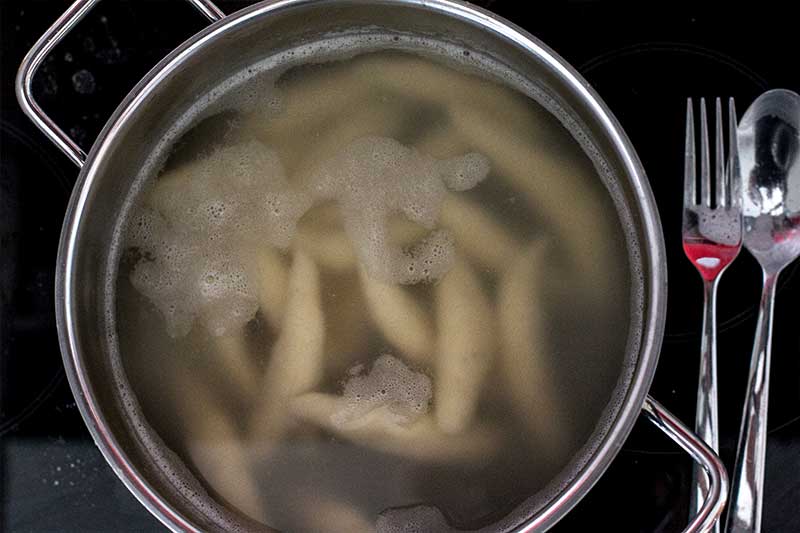 Schupfnudeln etwa 10 Minuten in heißem Wasser kochen